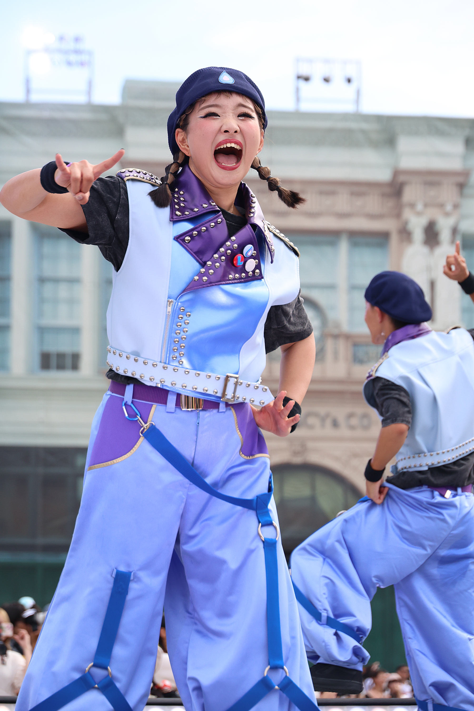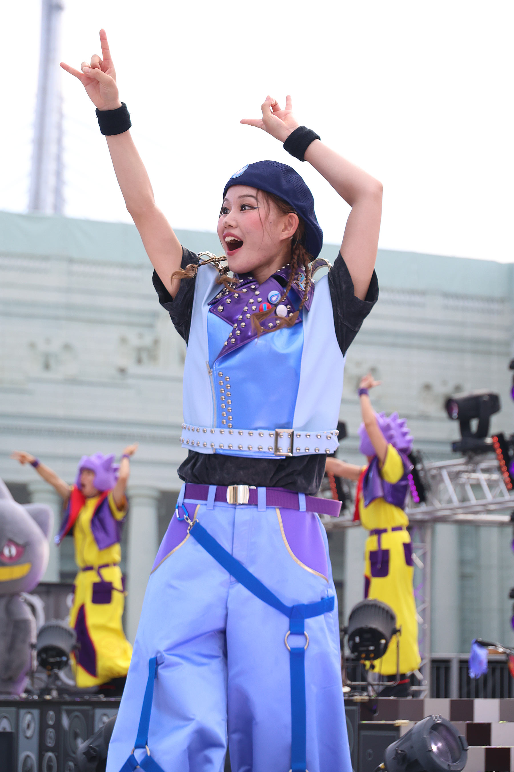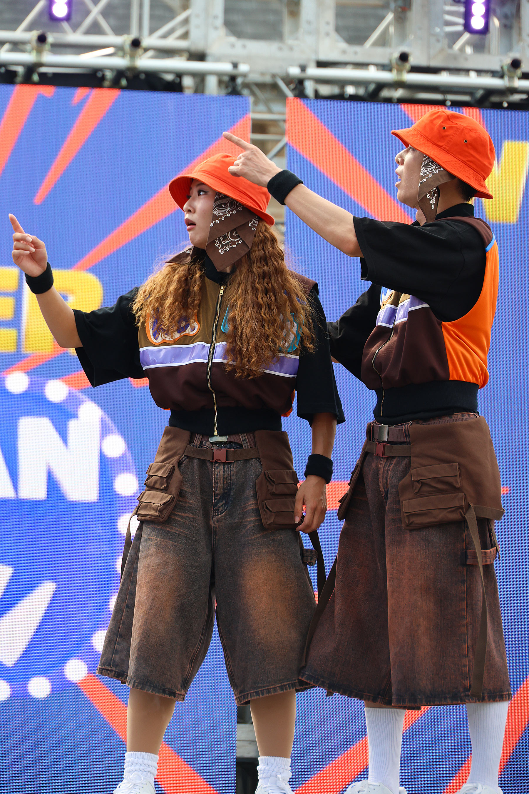 勝ったチームはステージ上で踊り負けたチームは下で踊る。